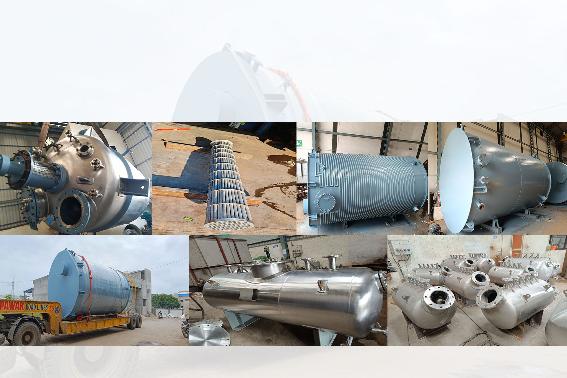We are having manufacturing facility to manufacture all kind of chemical Process Plant Equipment’s (PPE) like High-pressure Vessels, Chemical Reaction Vessels, Heat Exchangers, Storage Vessels/Tanks, Distillation Columns/Towers, Dispensers, Bag filters, Dust collector, flaker belts etc. We are providing customised solutions for wide range of products.